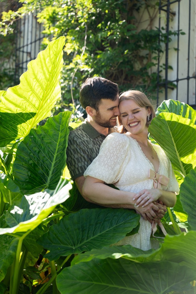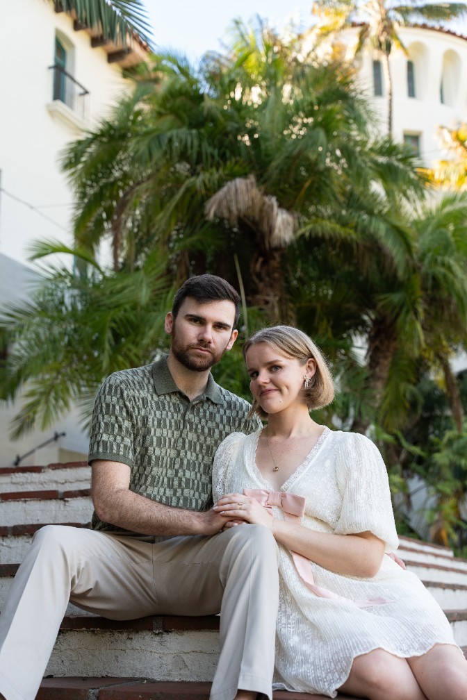 Up for a blind date at 8:30 a.m. tomorrow? Five years ago, Bradley and Mairin actually said yes to that question. It was a breakfast date at Café Vida in Culver City with their matchmakers as chaperones. Brad arrived on time but apologized for arriving after Mairin, explaining that he had parked "in Timbuktu." Mairin, appetite lost to nerves, swapped her favorite breakfast order (chilaquiles) for cold oatmeal and only ate three bites. Brad's napkin blew away from their table and he chased it through the wind ten feet down the sidewalk. A romance sparked. On their next date, Mairin revealed her fake Irish accent and Brad, a proper good lad, reciprocated. A best friendship ignited. On date four, Mairin left her phone and wallet by the entrance to Santa Monica beach (after taking their first photo together) and didn't notice it was missing for four hours as they talked on the sand and watched the sunset. They then spent an hour combing the beach in the dark and giggled the entire time. A forever partnership was born, and within two months, it was love.